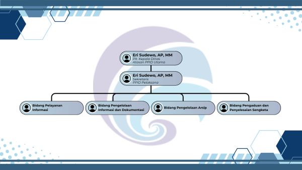 - Pejabat Pengelola Informasi dan Dokumentasi Pelaksana: Eri Sudewo, AP, MM selaku Sekretaris Organisasi